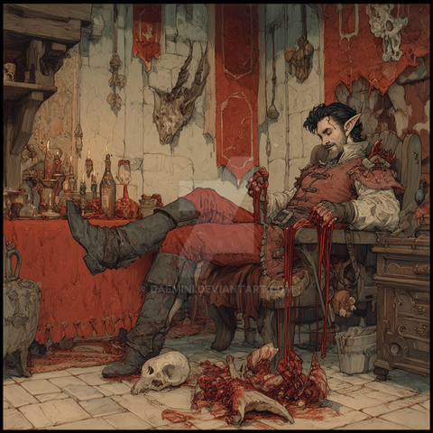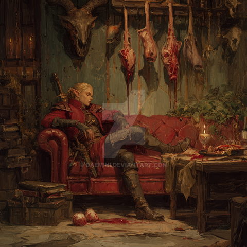 #digitalart #horror #conceptart #characterdesign #portrait #warrior #magic #fantasyart #blood #butcher #dnd #dndcharacter #elf #halfelf #meat