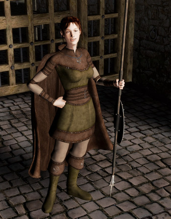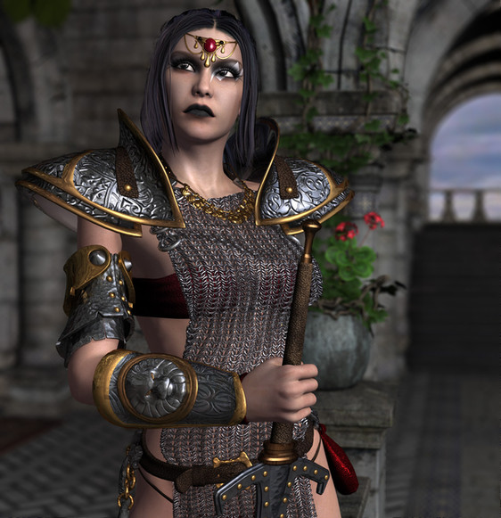 When she's outside the palace she prefers to dress like a common mercenary, but in the Court she knows what to wear.