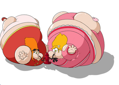 Really cute on this drawing! I love Balloon Gadget, and Fat Peach even more! I agree, all that cake did went to good use! XD