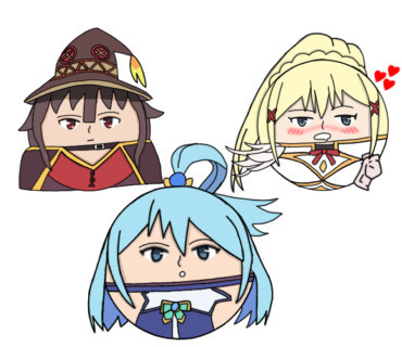 Commish for featuringΒ Aqua, Megumin and Darkness from KonoSuba getting some fun tf treatment (also watch the series to get why darkness is smilingRelated content