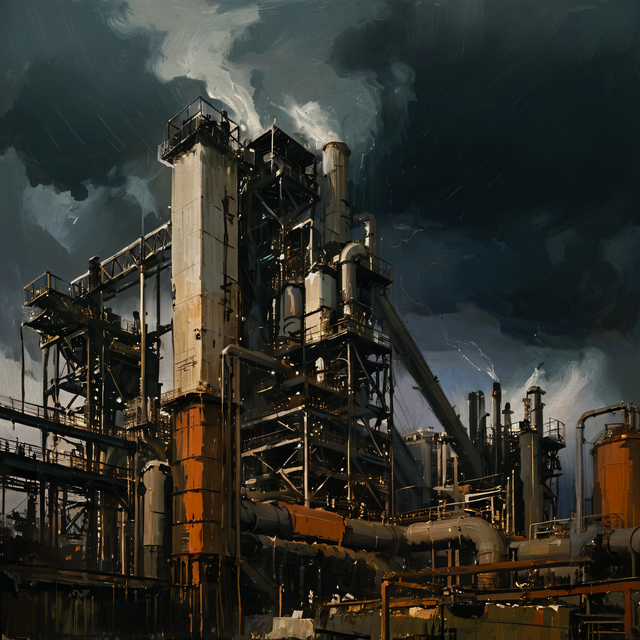#factory #industrial #inferno #metalwork #pipe #redsky #fire