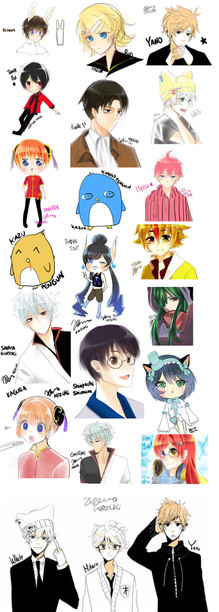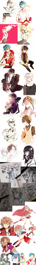 Featuring most of the doodles, sketches and WIPs I've done since April of this year to this day, submitter to either my tumblr or twitter!! There are more that I haven't uploaded anywhere but too much of a pain to put them in as well hehehe.So much KagePro in the middle wwwww (alsohnnggYata-chan). Oh oh in case you guys notice Minty's or Clavies's style somewhere, I drew them with permission ^ o ^