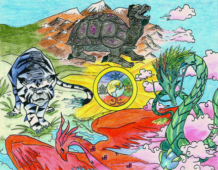 It's all entirely gorgeous. There's a serene feel to it. I like Red's expression a lot and the wolf looks wonderful as well. (I want to pet him, he looks so fluffy XD)