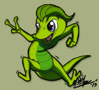 I tried so many diferent colors for him, really, been coloring for 2 days straight, but I settled for the colors of a certain type of gecko. It's called a 'gecko diurno' in spanish XD .... it just looked weird in other colors.