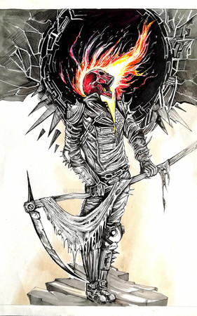 #ink #comicsart #drawingillustration #drawingpen #ghostrider #hero #skeleton #sketch