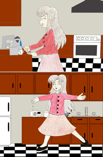 can you do a request? draw kasumi tendo from ranma 1/2 and draw her in the kitchen stuck in glue and pullin her feet to no avail. for the sequel , draw akane tendo attempting to free her to no avail. accept?