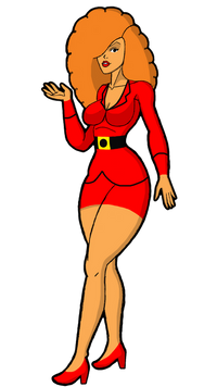 The bright mind with the curved figure, and the real brains behind the political power of Townville, despite hardly ever seeing her face. Here she is Ms. Sara Bellum.Ms. Bellum, unfortunately, never made it in game for most likely two reasons. One would be the issue of putting a character that was mostly just made for eye-candy humor jokes and having something like that in a game for kids would be a challenge. It's not a good excuse but one that I think would have been given. And two, programming a character whose face from be hidden at all time, especially in a 3D enviroment, would be especially hard to near impossible. So she never got an ingame model, depsite the Mayor being there himself. But she got a hidden easter egg in the Townville Park with a statue that, conveniently, had her head cut off.