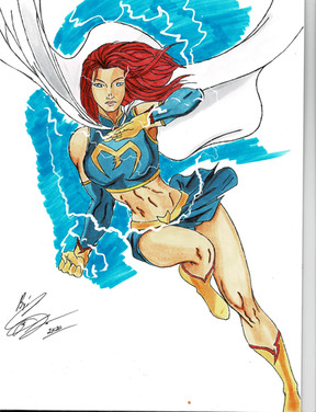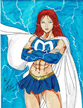 Here is another Mindy Marvel pic that I had in mind & finally got it on out the way. She's about to take out some foes that's in her way. knows that I like drawing his main heroine & I'll drawing more of her in the near future.Mindy Marvel belongs to & was used with permission