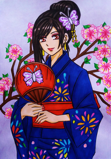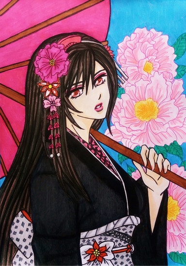 Pour tout dire, tu l'as tellement bien dessinée (en tout cas, c'est mon opinion ^w^) qu'on dirait une scène de l'anime !! >w< (même si je trouve les pétales flottants un peu bizarres dans la réalisation...)