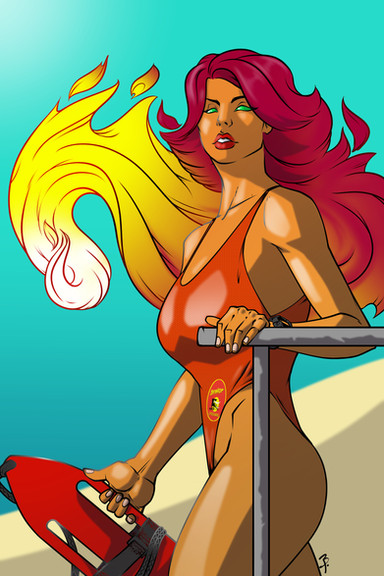 Fathom is created by D-Wald through the Champions Online Game System.Another commission for D-Wald of his character Fathom, this time in her guise as a human lifeguard. I kept imagining those slow motion running sequences of a young Erika Eleniak on Baywatch while drawing this piece (the young people might not know what I'm talking about).