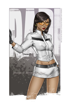 That's all I can say. Wonderful work as always. I particularly like the gritty look of the background, it really goes well with the apparently tough personality of the character. And I must say I'm thankful that you didn't go for the gratuitous panty shot as well; she looks classier without her underwear completely exposed to the world. Great work man.