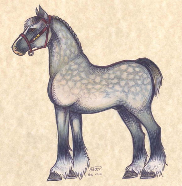A suffolk draft horse. Hooray for dapples...eeee!Pose referenced from a horse encyclopedia.