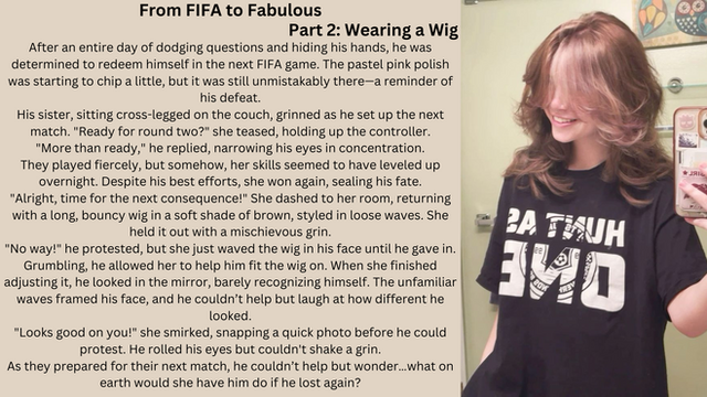 Lost a bet to ProperlyPinkTg when we both entered a competition hosted by CourtneyCaptisa. Guess I should be happy that all I had to do was make her a story. Could have been worse, I could be in a skirt now.Related content