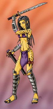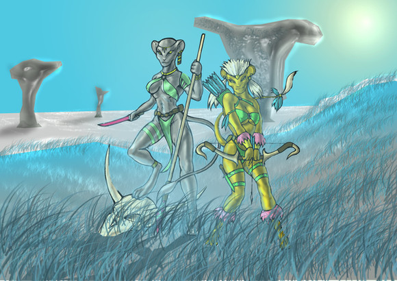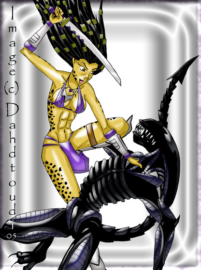 Tia'ja looks great! Has she been working out? Oh no! Xenos are everywhere! I'm sure they will both come out on top of the situation! Simply amazing artwork!