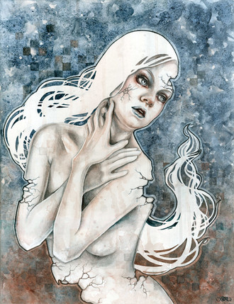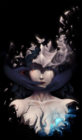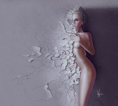 This is amazingly beautiful... I love the concept and the fact she is falling apart. Pure genius I like the lighting and colours too. One of the most important skills in the painting is to estimate well the light. You always use this skill flawless