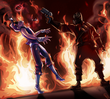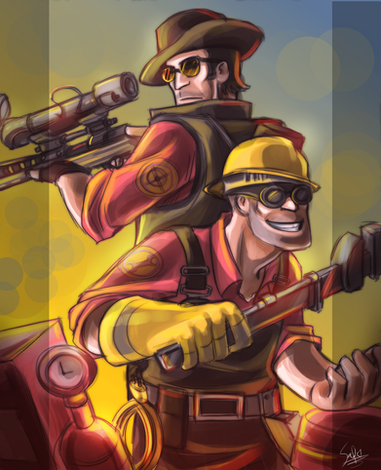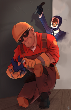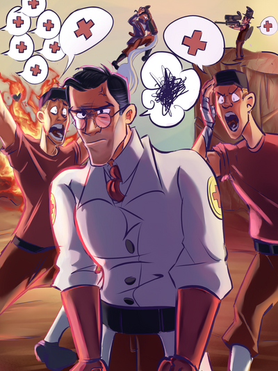 I have no idea how I made this.Why did I draw them so dramatic and why does medic sorta look like he's A posing? The world will never know..
