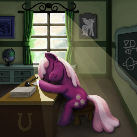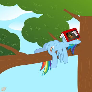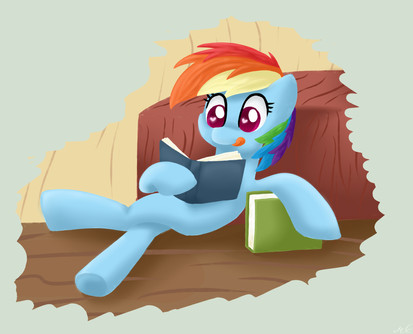 Naturally I'm way late with this reference to Read It and Weep. Rainbow Dash as egghead—literally.I realize that this is the first digital painting I've uploaded to DeviantArt. I don't make those that often, maybe because they take so darn long to complete. This one was made over the course of about one week. Also, drawing 99 books in a single image—that is more than enough to break one's sanity.