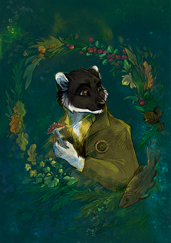#anthro #badger #digital #female #fox #furry #glowing #inspect #jm #male #painting #pans #pots #shop #stuff #teaset #vulpine #whatnot