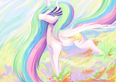 Also compliments on the soft tones, and yet you managed to keep her eyes bright and shining. And I love how you did the sharp shadows on her face, they work well with the curves of her mane and tail.