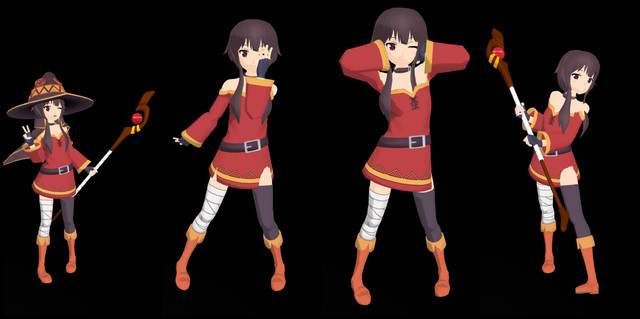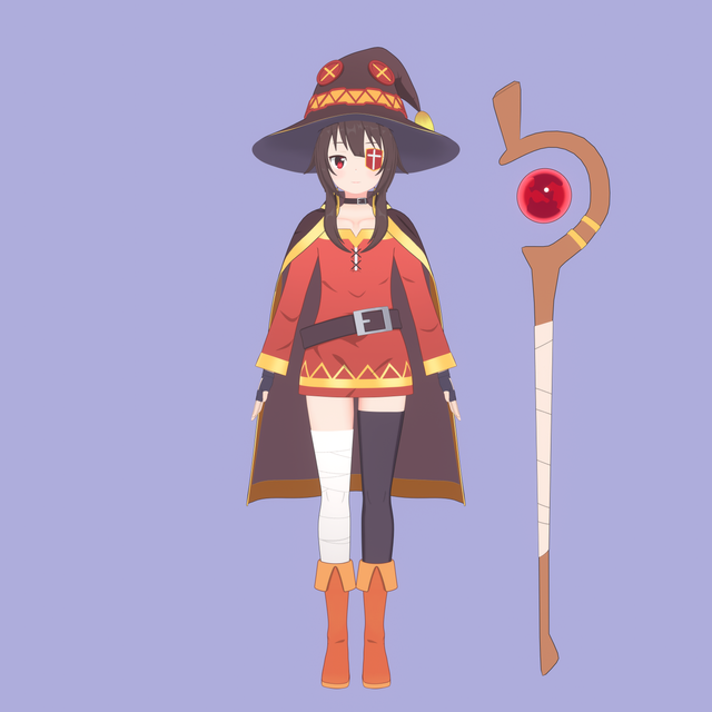 Megumin outfit... it was a hard work...but it's done!!contains: 8 models: hat - hair - eyepatch - collar - cloak - top - skirt - wand - as like image (you can change texture with metasequoia or pmd edtor)