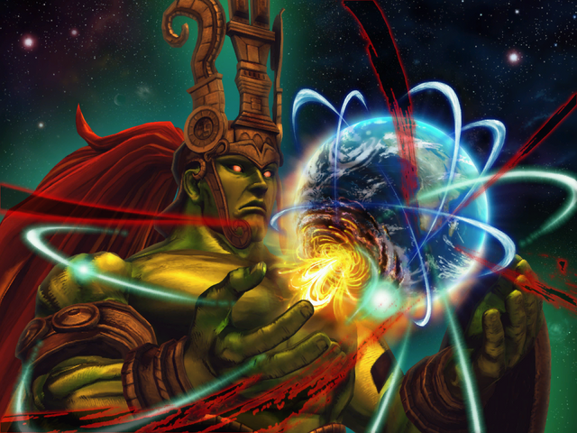 This is Pyron, alien entity from the planet Hellstorm, and boss of the Darkstalkers fighting-game series. He's a lifeform made of pure energy, who wants to conquer the universe. He found in Earth's Darkstalkers a challenge and an enjoyment, so he decided to take a humanoid form just to entertain himself fighting them.