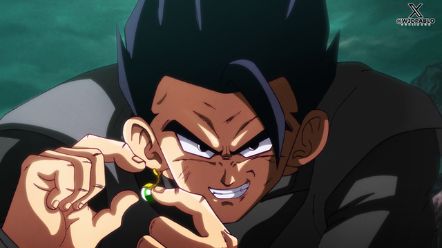 Vegetto eleva seu ki e suas sobrancelhas queimam,seus músculos crescem mais,e seu cabelo cresce,Broly termina sua transformação e Vegetto o chama pra porrada .