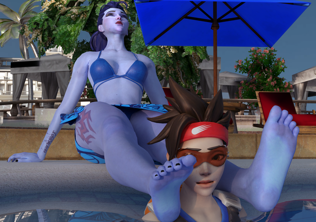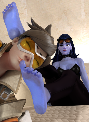 Majestic shot! I can see in Tracer's eyes how she loves Widowmaker's foot odor making her inebriated with passion.