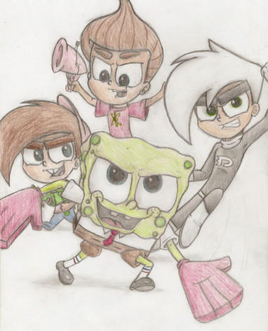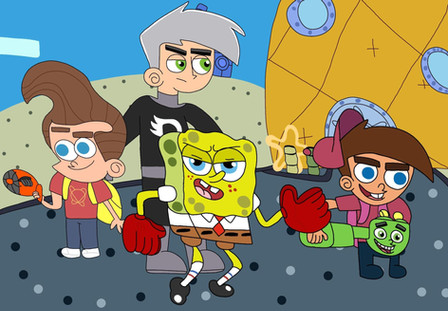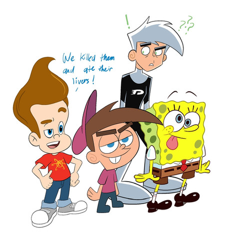 Hehe Jimmy and Timmy are arguing again I love Spongebob and Danny there too :3