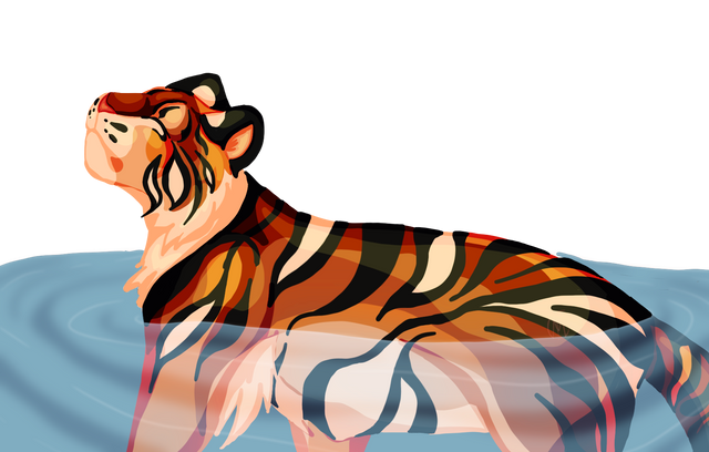 #animals #anthro #blue #clouds #furry #gouache #tiger #tigerstripes #watercolor #acrylicgouache