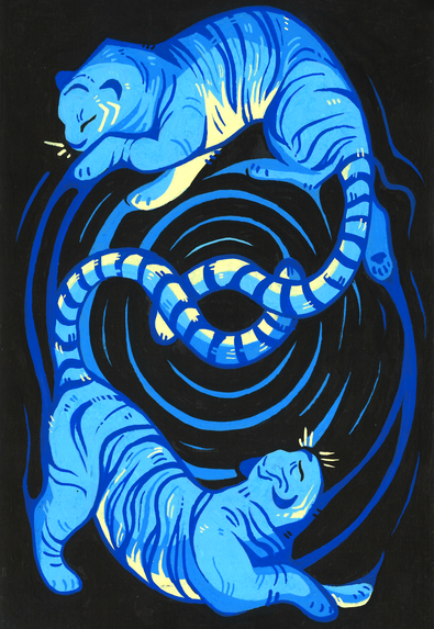 #animals #bigcat #cat #feline #furry #gouache #nightsky #stars #tiger #watercolor #acrylicgouache