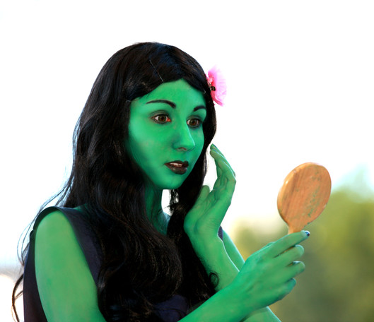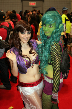 Making fan art is one thing, But to dress up as close to the character as possible? That is every nerds dream right there! I can tell that the bra, arm bands, and lower half of your apparel are all hand made. Because you can't expect the all-year Halloween stock stores to have everything. The amount of green paint on your naked skin is phenomenal to behold. And adding red eye contacts is the cherry on top of the Cosplay Sunday. Good show all around.