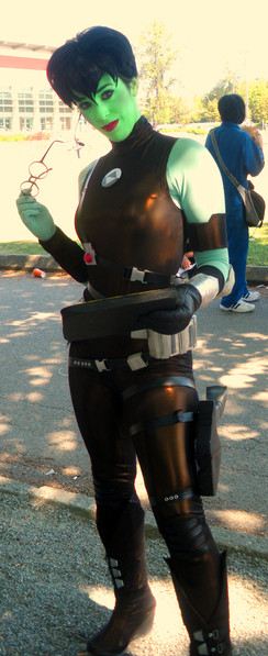 Daaamn. Having done the whole body paint thing with my Ember costume, I KNOW how much work that is! At least, I assume she used body makeup up like I did and not some sort of actual paint. Either way, that's probably a good two hours minimum to do all the makeup.