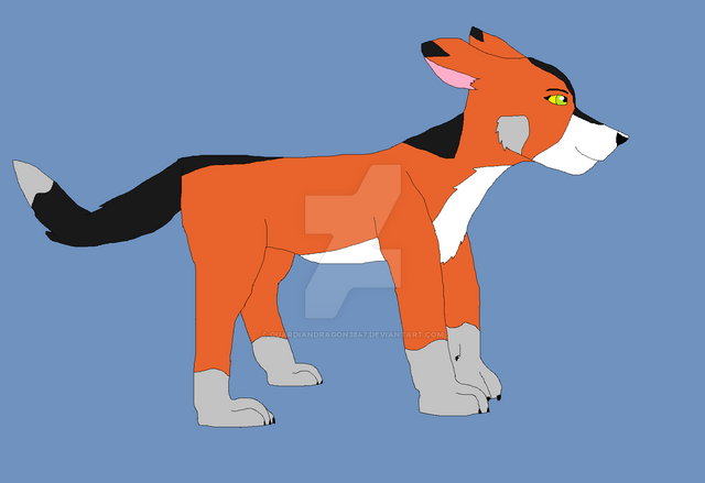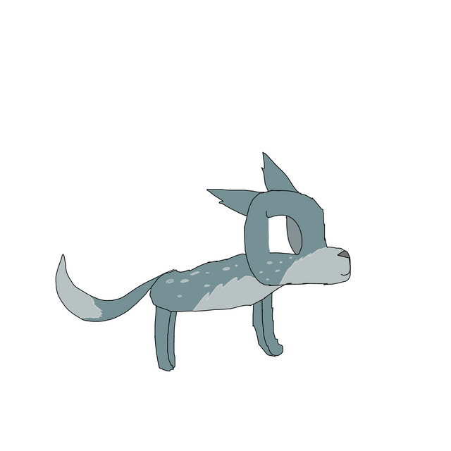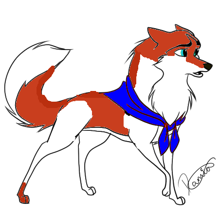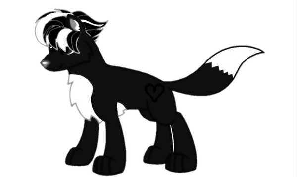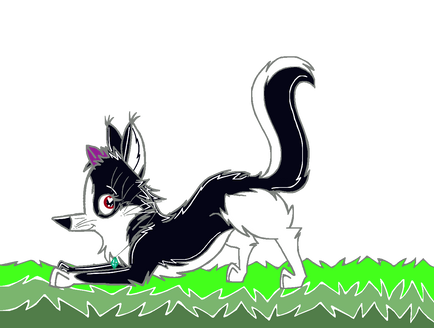 She is a cute wolf,Β short thick tufts in her ears and white stripe down tail like a skunk.she wears a diamont becklace.