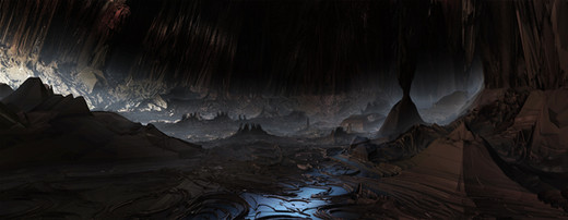 It has been this vast cavern where the shadow elf king led his folk for ages to gather and decide on the future. The blue-lit path guides the elves safely to the great hall at its end. For men and other creatures, the path remains in darkness.