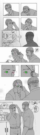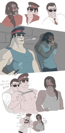 It's sad, Medic lost an eye for nothing. 'Cause Demoman left eyesocket is cursed. (Read Tf2 comics:" Bonbinomicon" and "The naked and the dead")Β