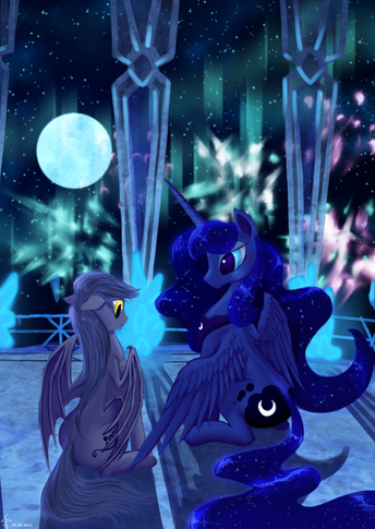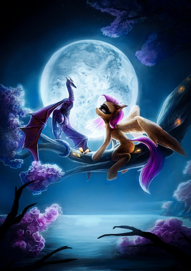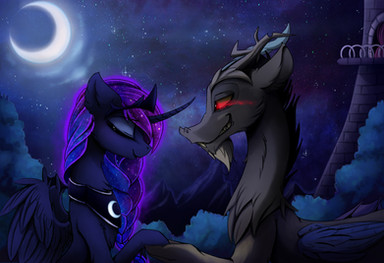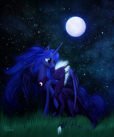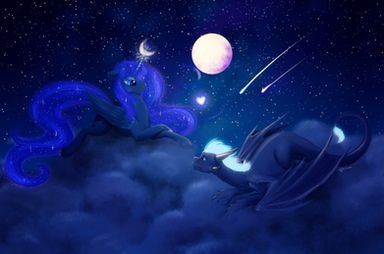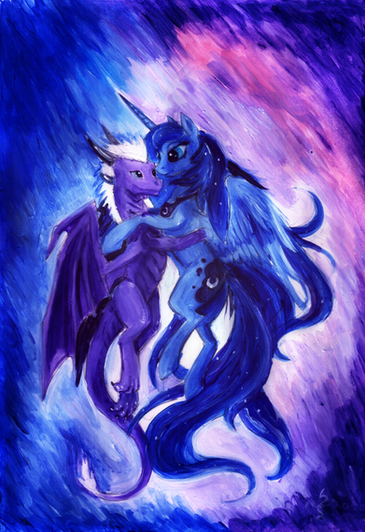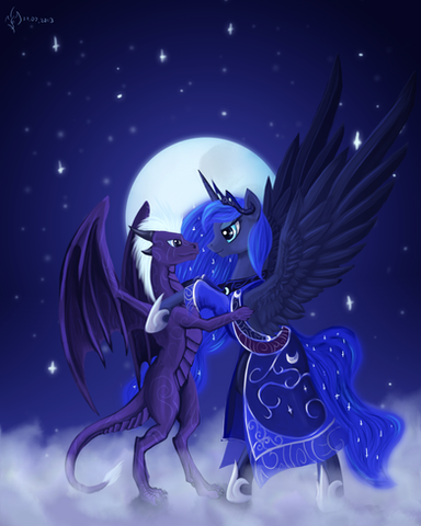 Two being I love a lot. Princess Luna and a dragon. I like the floating mane and tail you gave Luna and the look of her wings.