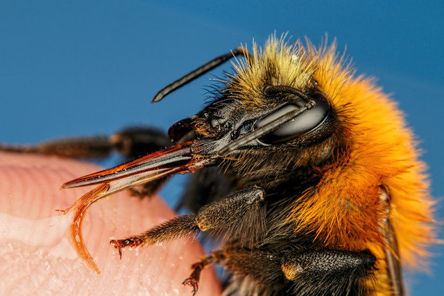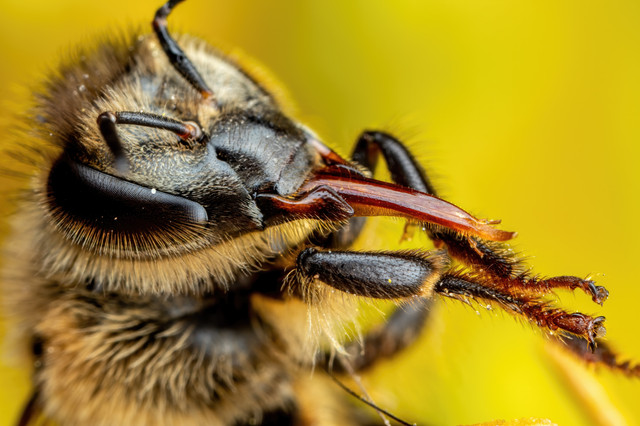 How far away from the bee are you when you take these kind of pictures? Very amazing art by the way!