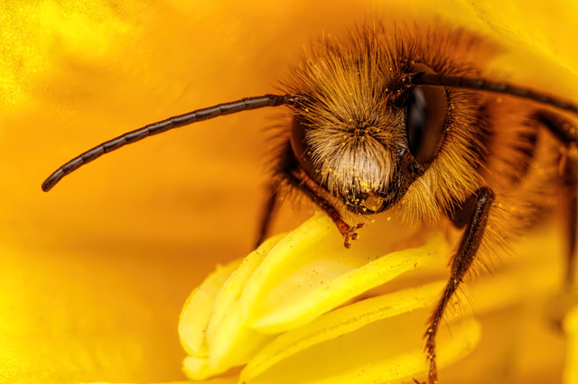 I used a little honey to slow her down long enough to take the shot, and to allow me to grab onto the lavender about one centimeter below her (had to take control of the motion in the scene).Tech specs: Canon 40D (F13, 1/250, ISO 100) + a Canon MPE-65mm macro lens (@ 2x) + an MR-14EX macro ring flash (-2/3 FEC and a 1.5:1 ratio).