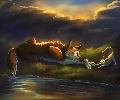 Thank you n_n Here I used photo textures, but when it comes to painting, just start withthe darker color and add lighthing with a soft hairy brush to have a fast and nice looking fur. Direction of the fur is VERY important