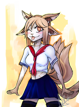 This sabertoothed gal looks very cute and sexy in her school uniform in this picture you've done!