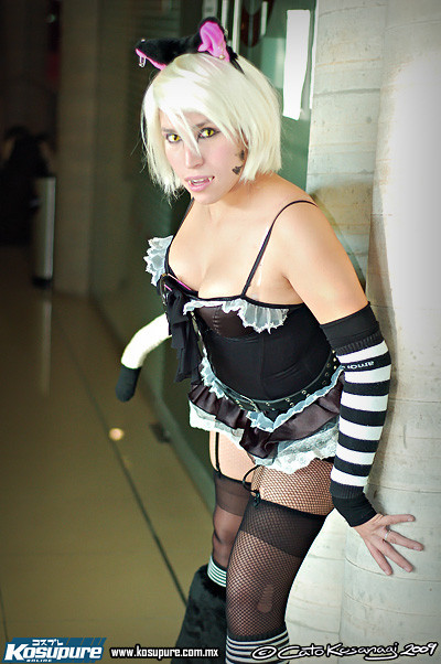 WOW!! Que linda gatita, se ve muy bien y me encanta su cosplay. Con todo respeto me encanta su boquita, se le ve haci de...MMM..ha ha ha. Se ve bien.