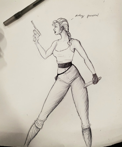 A rough sketch of a character created by the great Damselbinder . Her name his Lupus, AKA Charlie, AKA Varg, and she's from his series 'The Perils of Valora'. Do give it a read if you haven't. It's a wild ride.
