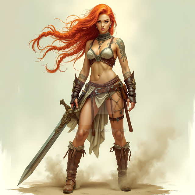 #warrior #fantasyart #redhair #warriorwoman #fantasycharacter #characterdesign #portrait #beauty #barbarian #cartoon #amazonwarrior #feet #foot #footfetish #sandals #toes #footfetishart #sandalsfeet