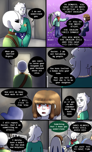 SHE SPEAKS. Poor Papyrus thought he was going to play with Asriel when he went to the castle because 'ol green boy didn't tell them that Asriel didn't feel up to it. Or maybe he didn't know. Whatever the case, the prince is busy sulking and that throws a big wrench in Papyrus's plans to play one-opoly and domath.
