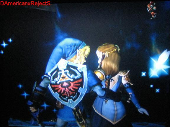 Yet another SSBB screenshot!It looks to me like Zelda is telling Link a secret