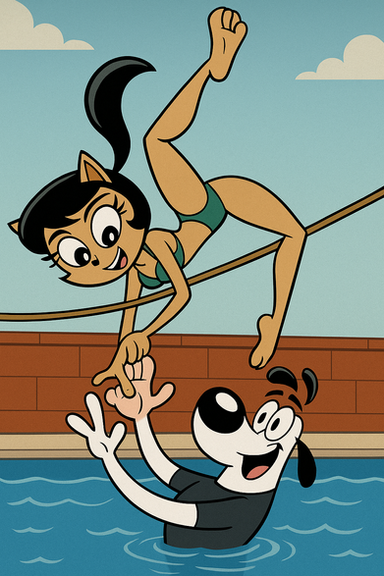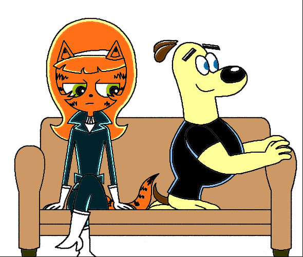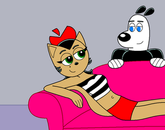 Kitty (flirting with dudley and rubs his tail on his face): May be you come back to home with me? We may drink coffee or something.Dudley: Of course Kitty