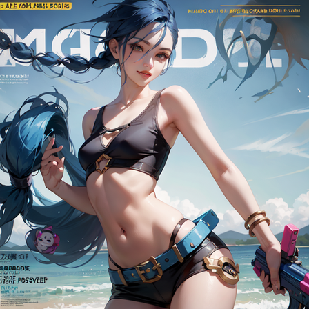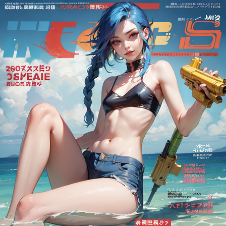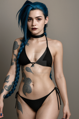#tattoo #portrait #beauty #ai #braid #cosplay #lol #necklace #skinny #swimsuit #water #swimming_pool #blue_haired_girl #league_of_legends #videogame_girl #sexy_legs #jinx_lol #natural_breasts #game_fanart #jinx_league_of_legends #narrow_waist #arcane_netflix #jinx_arcane