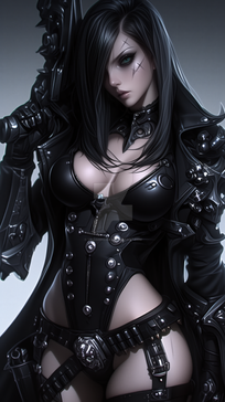 #abdominalmuscles #abs #ai #babe #blackhair #darkelf #elf #elfears #elfgirl #futuristic #gothic #gothicgirl #gun #makeup #realistic #sci_fi #sciencefiction #scifi #huge_breasts #armor #beauty #cleavage #cool #coolgirl #darkeldar #eldar #girlwithgun #leather #midriff #weapon