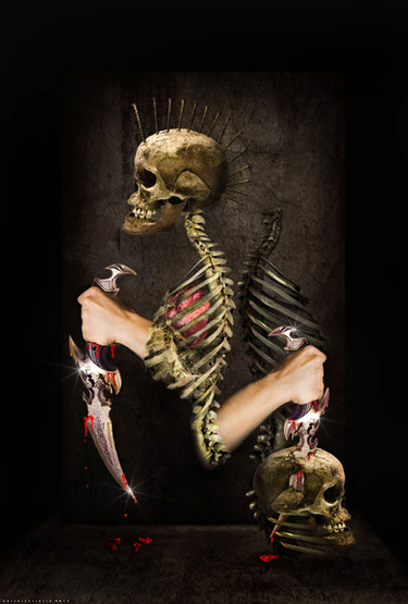 You should continue to follow up on that, because this piece and ''even if i have to tear my...'' are two of your best pieces. They are both really well done, really emotional and artistically intense. I love it! Both are great. The only thing that bothers me in this piece is the texture in the bottom right of the piece. It looks like you put it into 3ds max and rendered it, just doesn't really fit in. Maybe it's just me but it doesn't look right. The use of the skull as the head / face (as well in ''even if i have to tear my..'') is great and effectful. The texture at the back of the head in this one is amazing, whatever it is - it looks really fleshy, meat-like and fragile. And the surgical blades gives a wonderful sense of it tearing through it... Amazing piece!