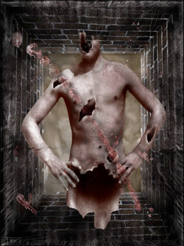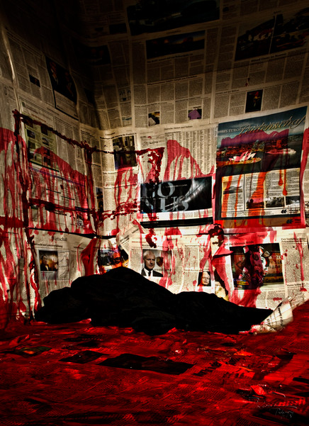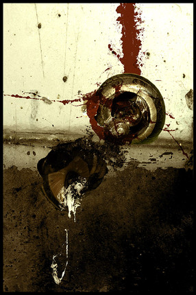 the crop at the bottom is very interesting cutting off part of the being,the lighter tones of blood on the wall,compared to the vibriant red on the floor sorta surprises me I would think it would be a little more of the same tonelity as the floor,but not as reflective due to the angle,great stuff as always though man.